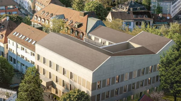 Die städtebauliche Situation wird mit dieser Lösung deutlich verbessert. Der Ersatzneubau bildet eine Klammer, welche die beiden Häuserzeilen (Socinstrasse 55-55a und 57-59) zu einem homogenen Gesamtensemble zusammenbindet und klare Aussenräume von hoher Qualität schafft. Quelle Kanton Basel-Stadt